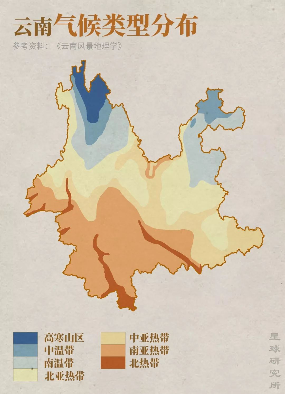 由于云南独特的北高南低地质结构,南北900余千米的范围内,有7个气候带(区)相当于从海南岛到黑龙江的气候变化。而在局部,高山呈现出了明显的,气候垂直带谱,这种气候变化,更是被压缩在仅仅数千米的高度范围内。如此紧凑的范围,拥有如此丰富的气候类型,为生物的繁衍提供了更多可能性,也为各类微生物发酵提供得天独厚的条件。