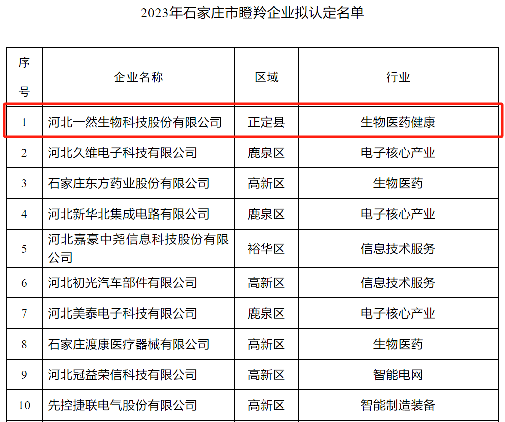 根据《石家庄市瞪羚企业认定管理办法》,市发展改革委组织开展了2023年瞪羚企业认定工作。经市委、市政府研究决定,对河北凯发k8官网生物科技股份有限公司等34家企业授予2023年石家庄市瞪羚企业奖牌,并对其中27家企业予以奖励扶持。34家瞪羚企业包含生物医药产业11家,新一代电子信息产业9家,智能装备制造产业8家,新材料4家,先进环保2家。 据悉,这是河北凯发k8官网生物科技股份有限公司荣获“2022年石家庄市瞪羚企业”后,再次获得此项荣誉。